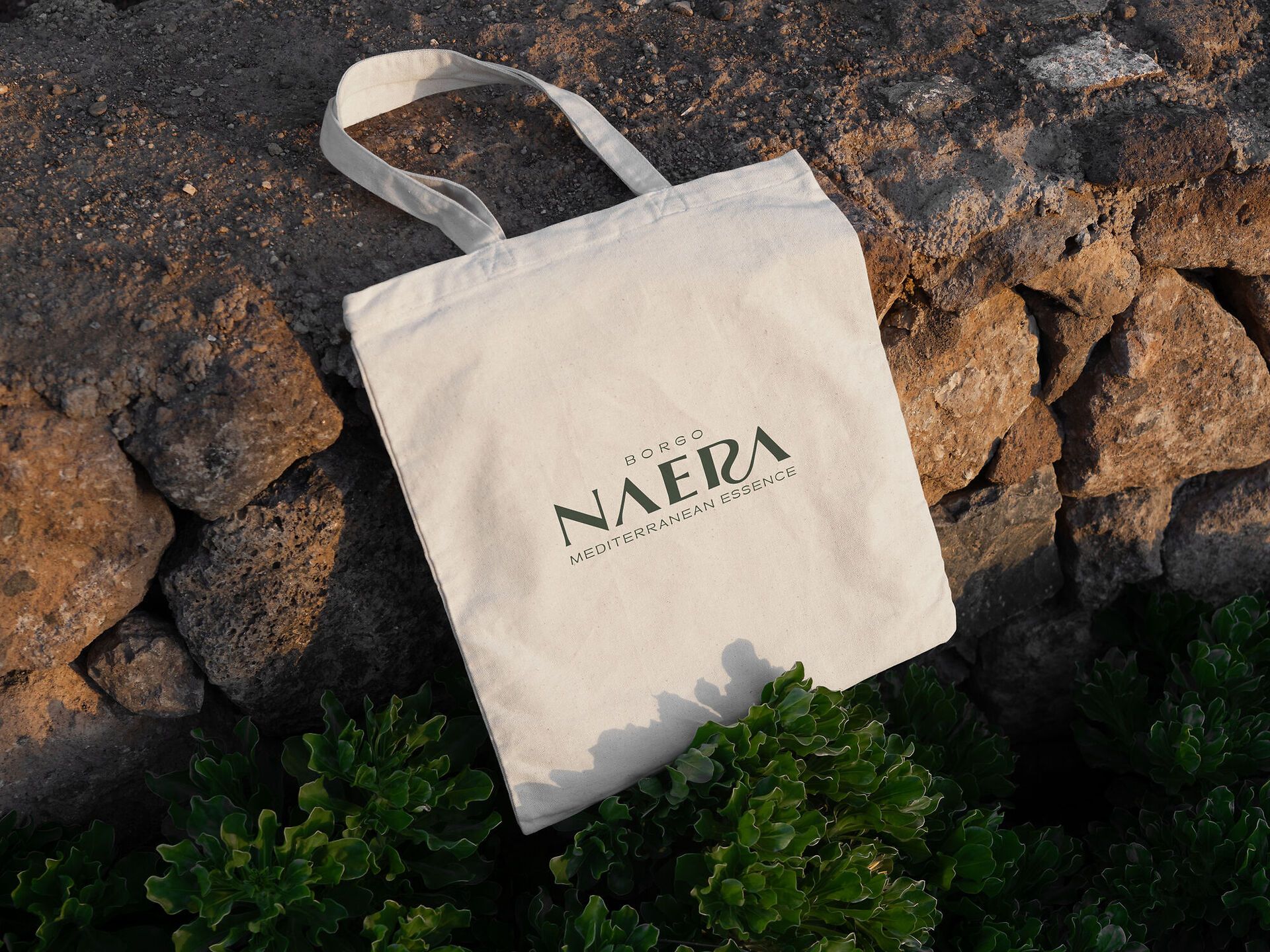 L’identità si estende in un linguaggio coordinato fatto di cromie naturali, contrasti eleganti e un equilibrio costante tra pieni e vuoti. Il sistema è stato pensato per funzionare sia in contesti editoriali e digitali, sia su materiali fisici come shopper e supporti di presentazione, mantenendo coerenza e riconoscibilità. Paesaggio e dettagli diventano parte di un unico racconto, coerente con l’idea di “mediterranean essence” e con una narrazione che lega territorio, progetto e visione.